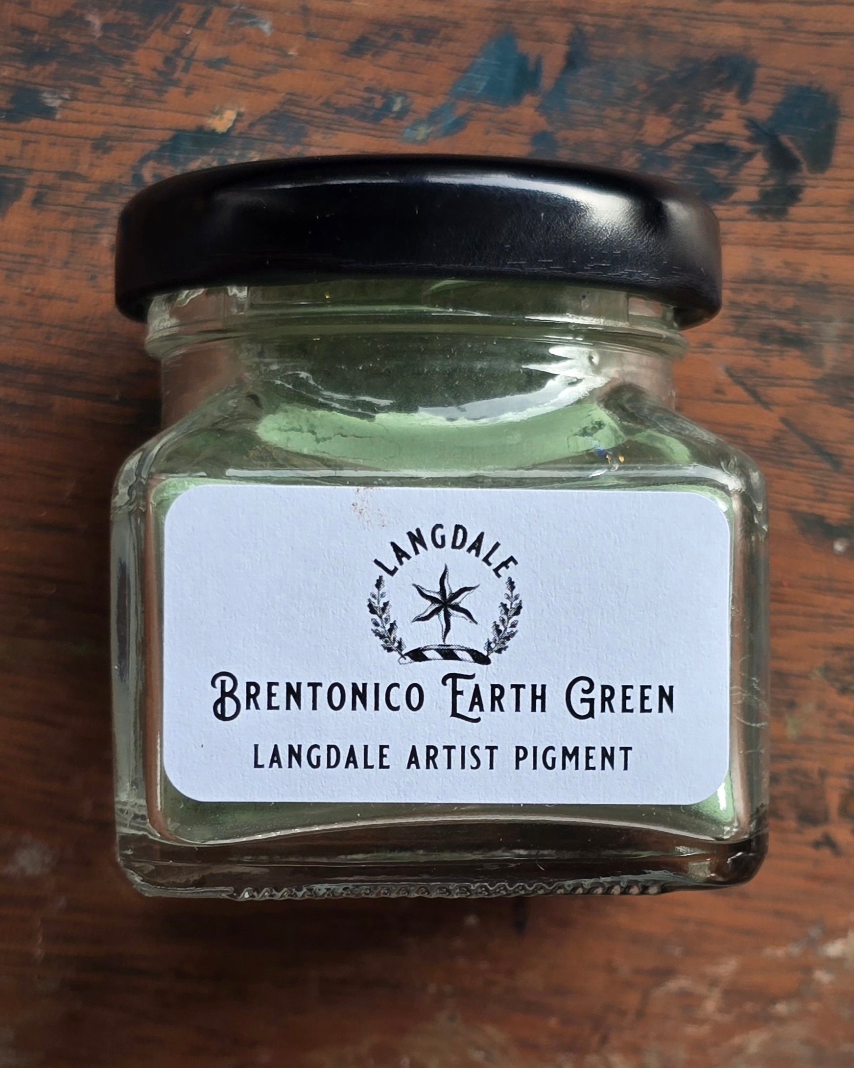 Brentonico Earth Green is one of our beautiful 100% natural earth pigments that comes from the Verona region in Italy. This pigment's use can be traced back through history to Roman times and beyond. It is does not have strong colouring power, and is lovely to use as undertones to flesh colouring.