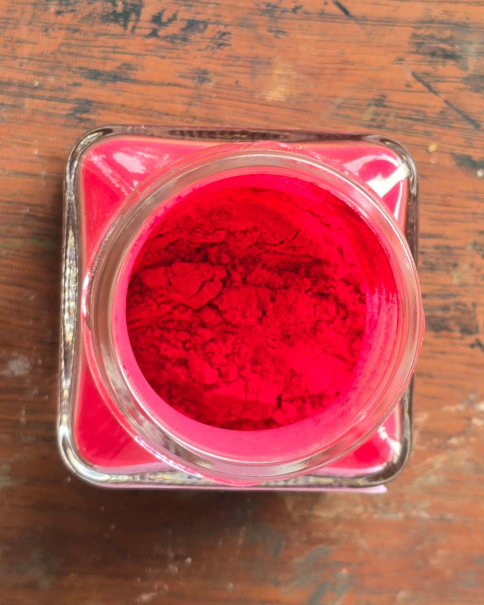 We've named this pigment Cinnabar Red, as a (non-toxic!) nod to the use of this colour in antiquity. While our Cinnabar Red pigment is synthetic and non-toxic, its namesake was made from the toxic mineral cinnibarite - a brick red to scarlet form of mercury associated with volcanic activity and hot springs.