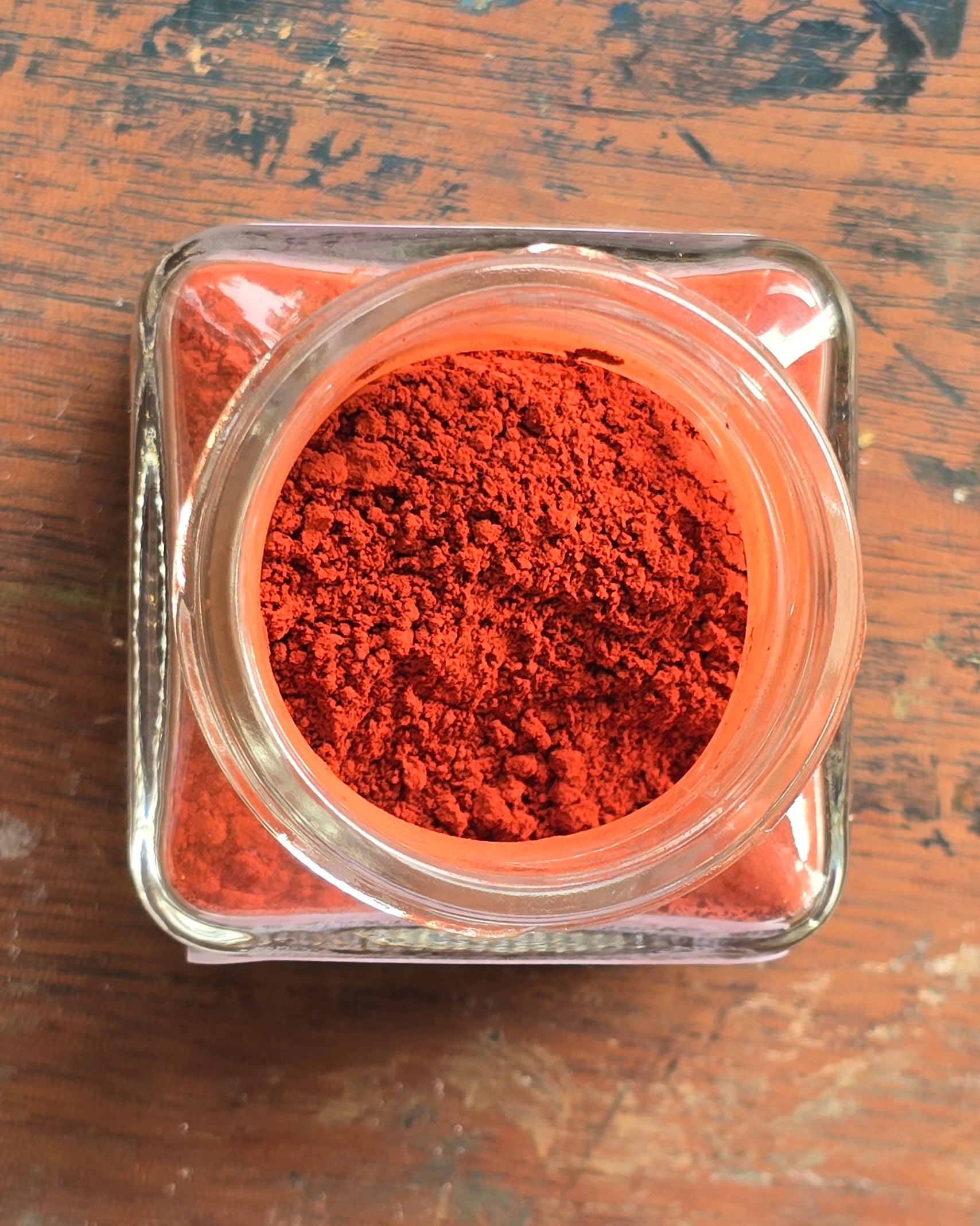 Known since Antiquity, Venetian Red is sought after in the artistic and restoration fields. It's a deep, earthy red pigment and is made from natural red iron oxide (hematite). Our pigment is extracted in the region of Veneto (Verona). It’s one of the oldest pigments used by humans—found in prehistoric cave paintings, Roman frescoes, and medieval manuscripts.