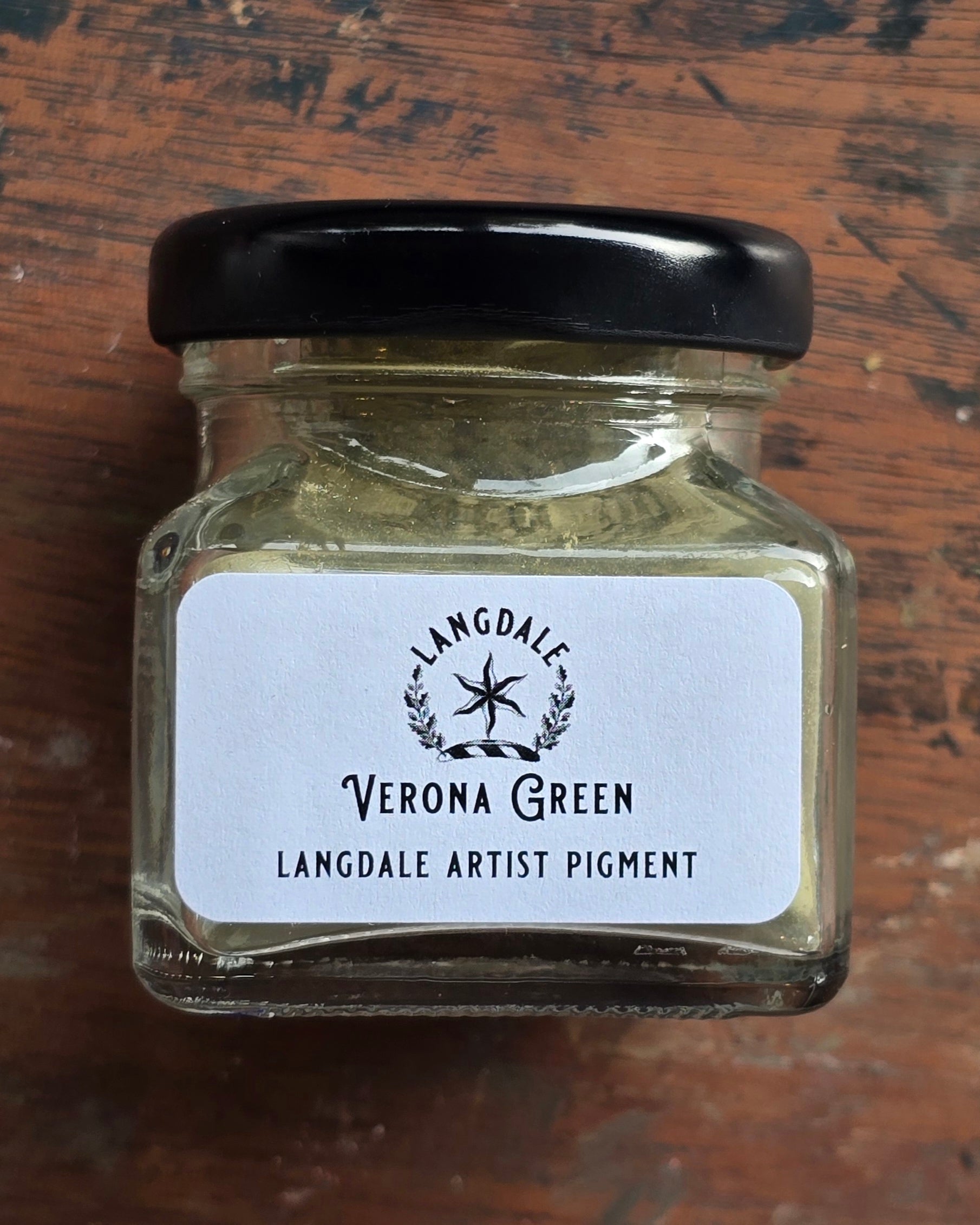 Our Verona Green natural earth pigment is a beautiful soft colour. Also known as La terre verte ancienne it comes from the region of Prun, near Verona, and is dried, purified and ground with ball mills.